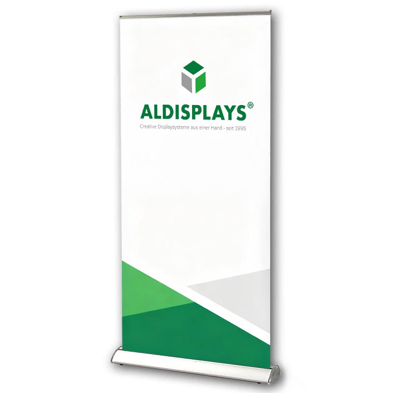 Bannerdisplay RollUp - DESIGN - Bannermaß: 1.200 x 2.100mm (BxH) - mit Klemmleiste oben - inkl. gepolsterter Nylon-Transporttasche - mit Tragegurt - (nur System - ohne Grafikbahn)