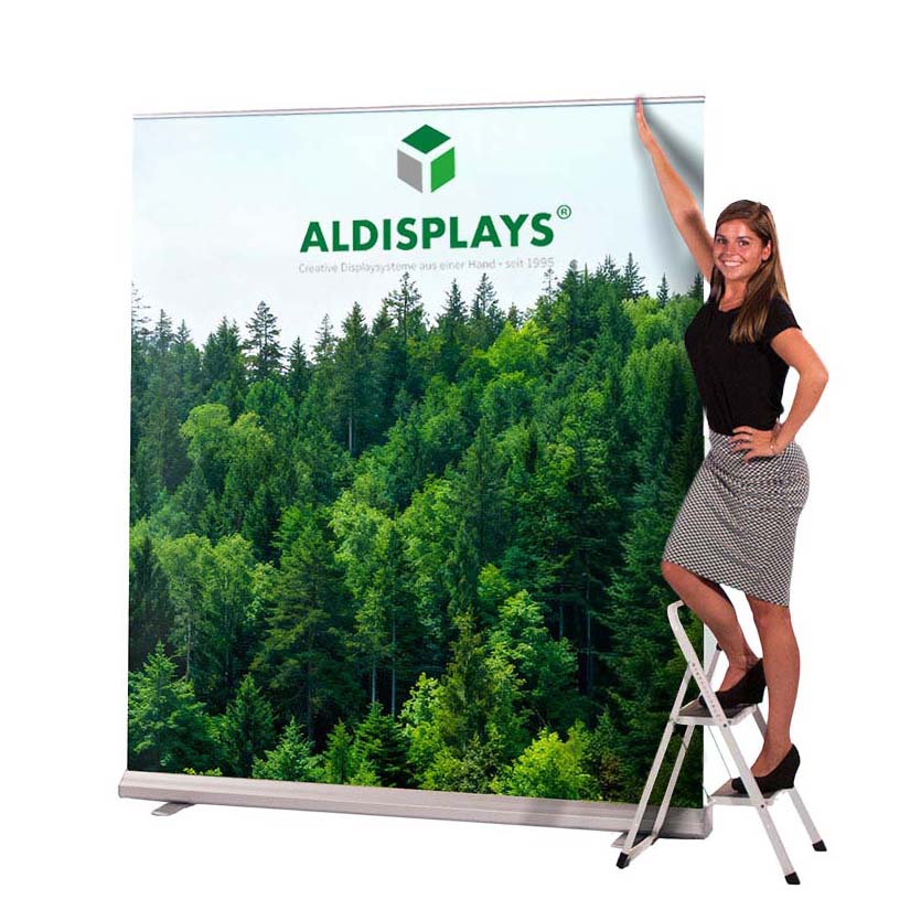 Bannerdisplay RollUp - MAX - 200 cm Höhe - Bannersichtmaß: 2.000 x 2.000 mm - mit 2 Teleskopstangen für flexible Höhen 170-200cm - gepolsterter Transporttasche mit Tragegurt, - Digitaldruck 2000 x 2180 mm (Greyback PVC-frei B1) - Druck gem. gel. Druckdaten - einzeln verpackt