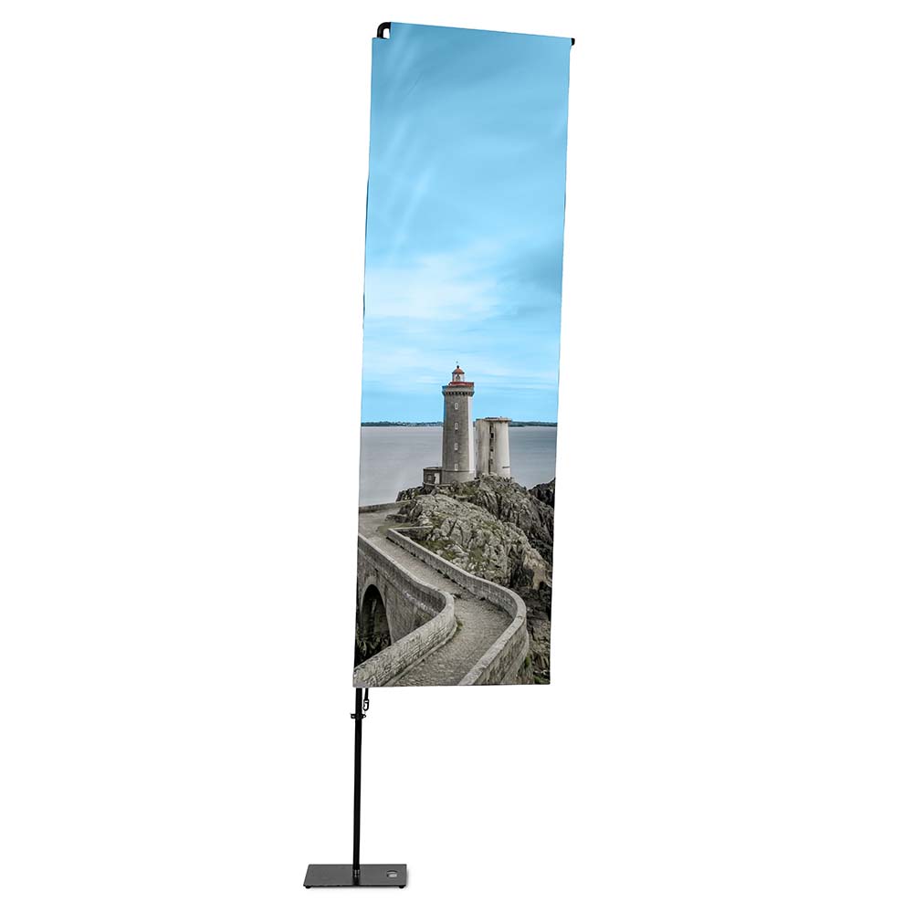 BeachFlag "Square" Größe XL einseitig - Bst. aus Alu-Mast-System und Transportbeutel - 4/0c Digitaldruck Fahnenstoff (B1) - Aufbau-Format: 840 (B) x 4.440 (H) mm - Druck-Format: 970 (B) x 3.870 (H) mm - Druck gemäß gelieferten Druckdaten