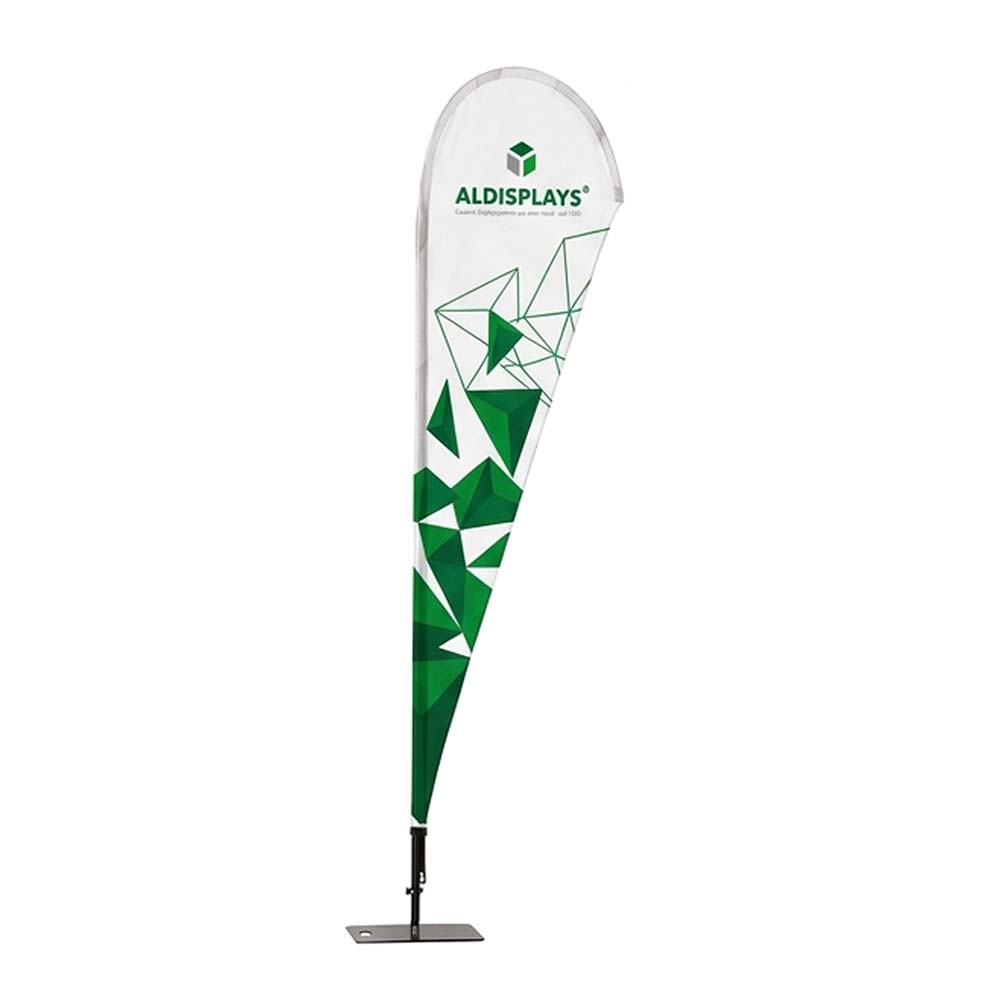 BeachFlag "Tropfenform" Gr. M beidseitig - Bst. aus Alu-Mast-System und Transportbeutel - 4/4c Digitaldruck blickdichtes PES (B1) - Aufbau-Format: 840 (B) x 2.760 (H) mm - Druck-Format: 880 (B) x 2.450 (H) mm - Druck gemäß gelieferten Druckdaten