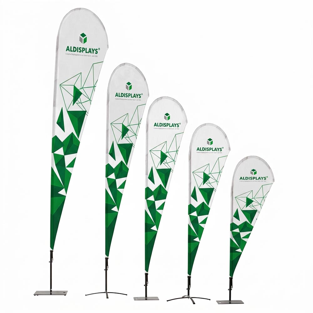 BeachFlag "Tropfenform" Gr. S einseitig - Bst. aus Alu-Mast-System und Transportbeutel - 4/0c Digitaldruck Fahnenstoff (B1) - Aufbau-Format: 840 (B) x 2.250 (H) mm - Druck-Format: 895 (B) x 1.900 (H) mm - Druck gemäß gelieferten Druckdaten