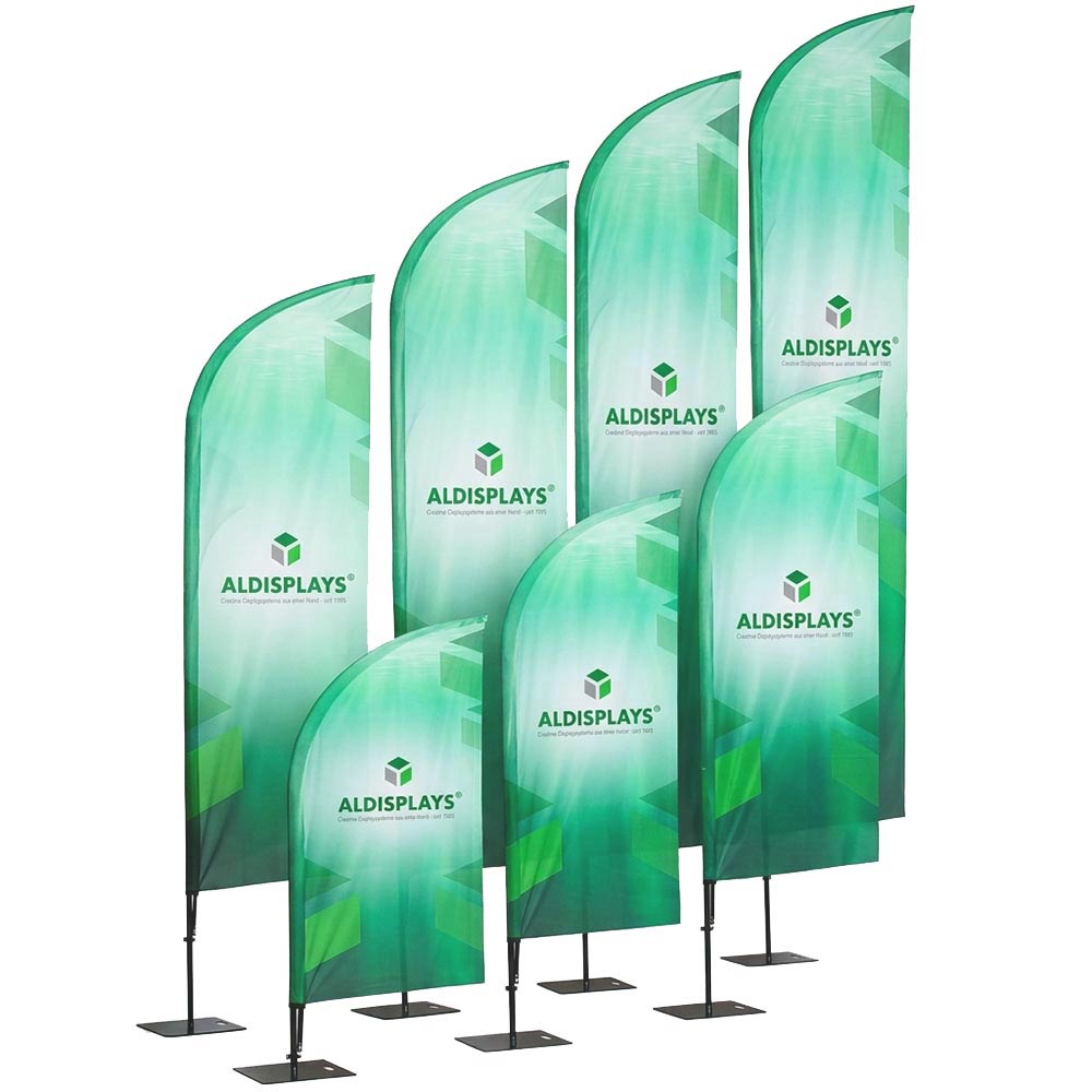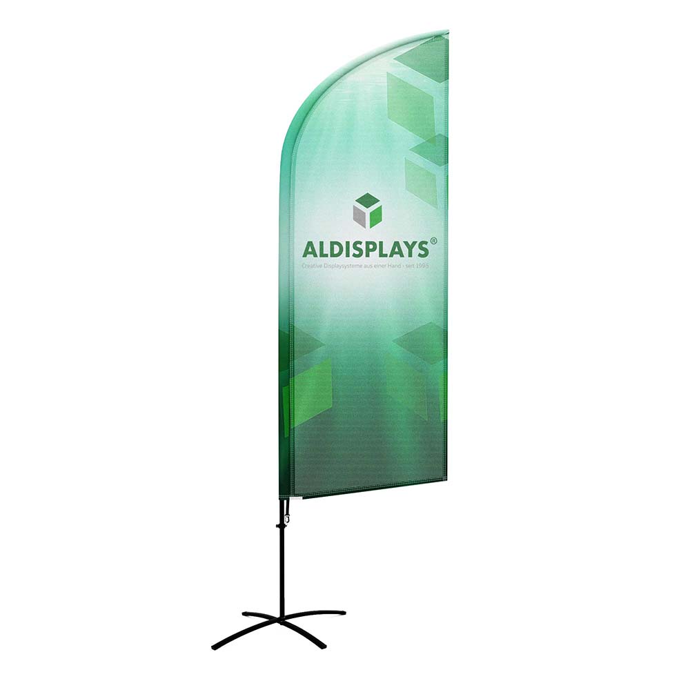 BeachFlag "Wing-Form" Gr. M einseitig - Bst. aus Alu-Mast-System und Transportbeutel - 4/0c Digitaldruck Fahnenstoff (B1) - Aufbau-Format: 860 (B) x 2.950 (H) mm - Druck-Format: 920 (B) x 2.434 (H) mm - Druck gemäß gelieferten Druckdaten