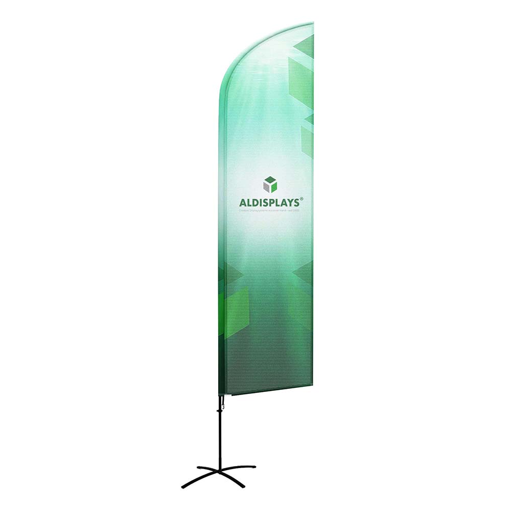 BeachFlag "Wing-Form" Gr. XL beidseitig - Bst. aus Alu-Mast-System und Transportbeutel - 4/4c Digitaldruck blickdichtes PES (B1) - Aufbau-Format: 860 (B) x 4.000 (H) mm - Druck-Format: 900 (B) x 3.467 (H) mm - Druck gemäß gelieferten Druckdaten