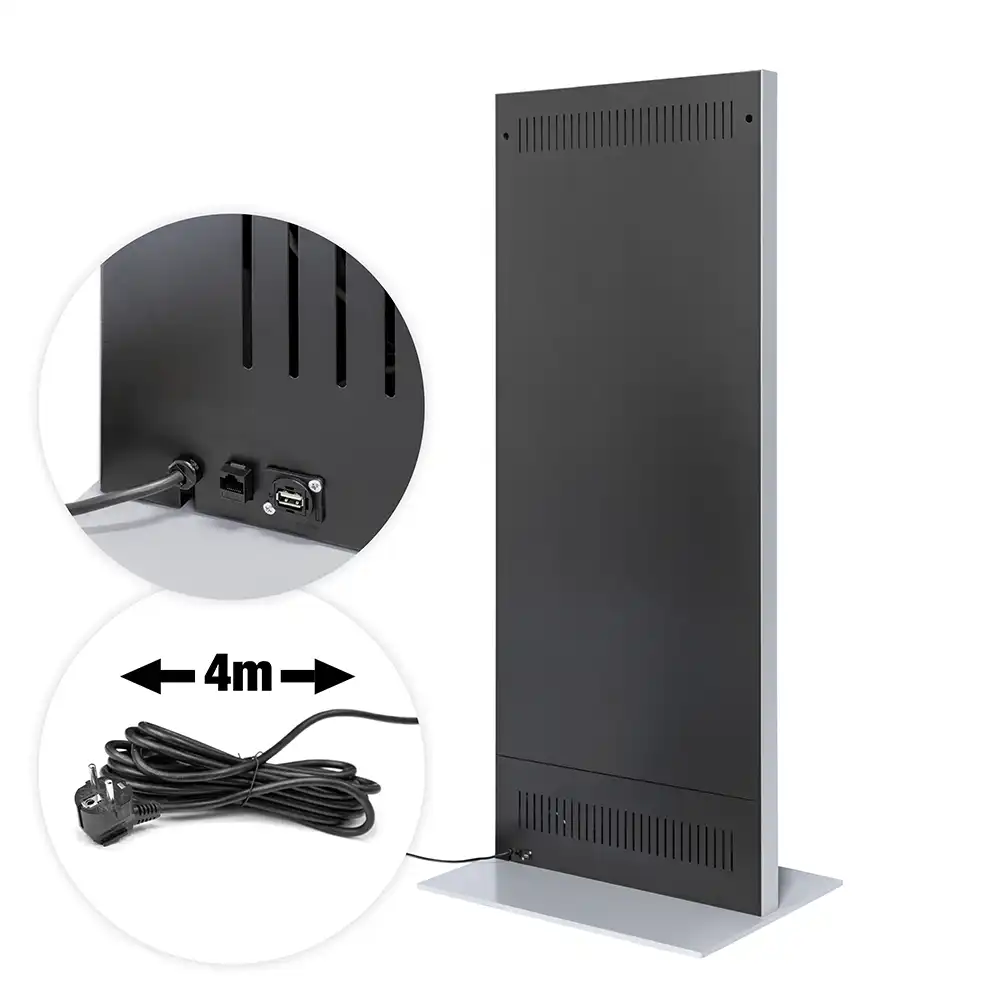 Digital Signage Digitale Info-Stele SLIM Touch - für den Inneneinsatz - Größe: 50 Zoll - 4K UHD - Farbe: silber/schwarz mit Touchfunktion mit 9ms Latenz - & 9-Punkt-Touch - Bautiefe 75 mm - einseitig - incl. Samsung-LED Display für den 24/7-Einsatz - (24 Stunden an 7 Tagen in der Woche)