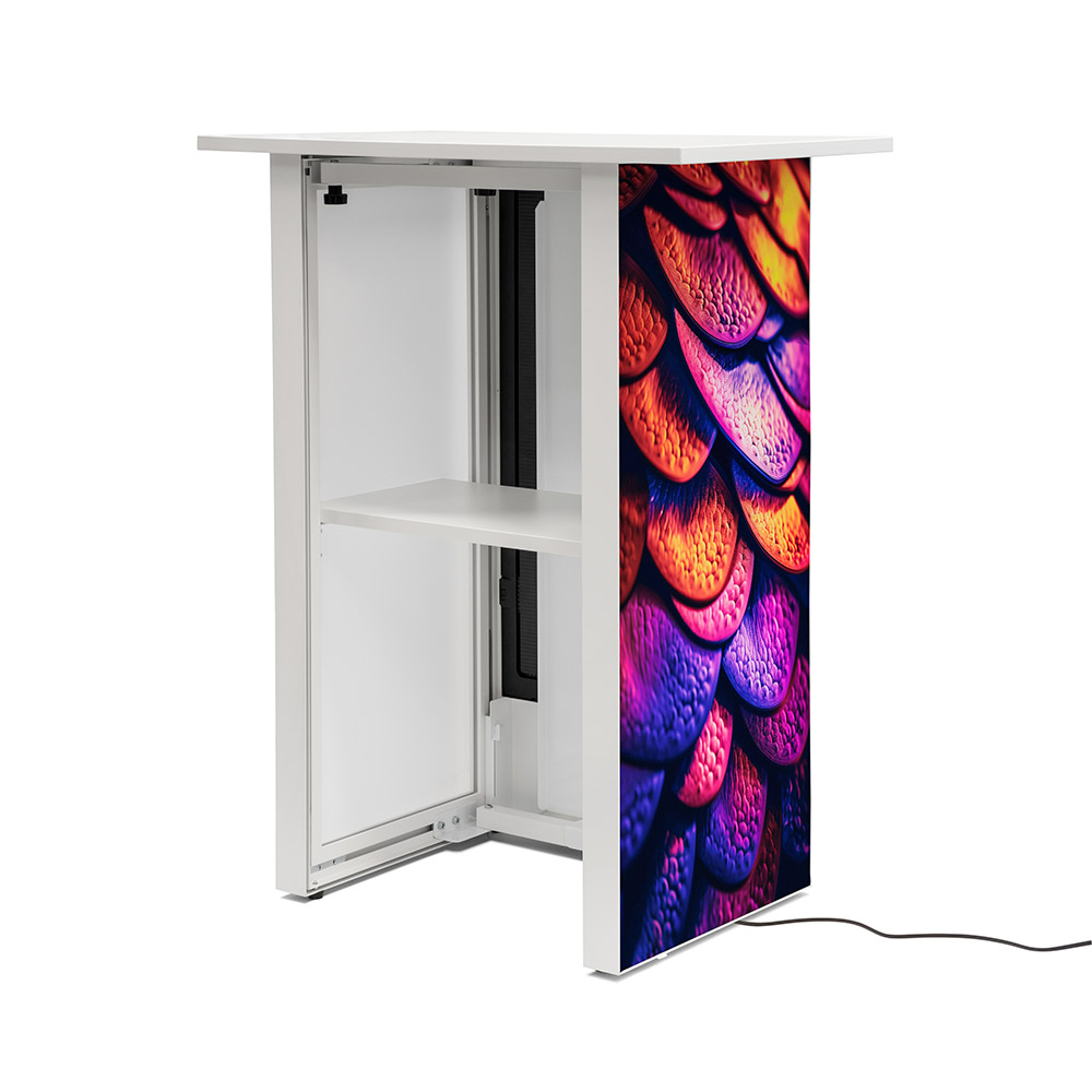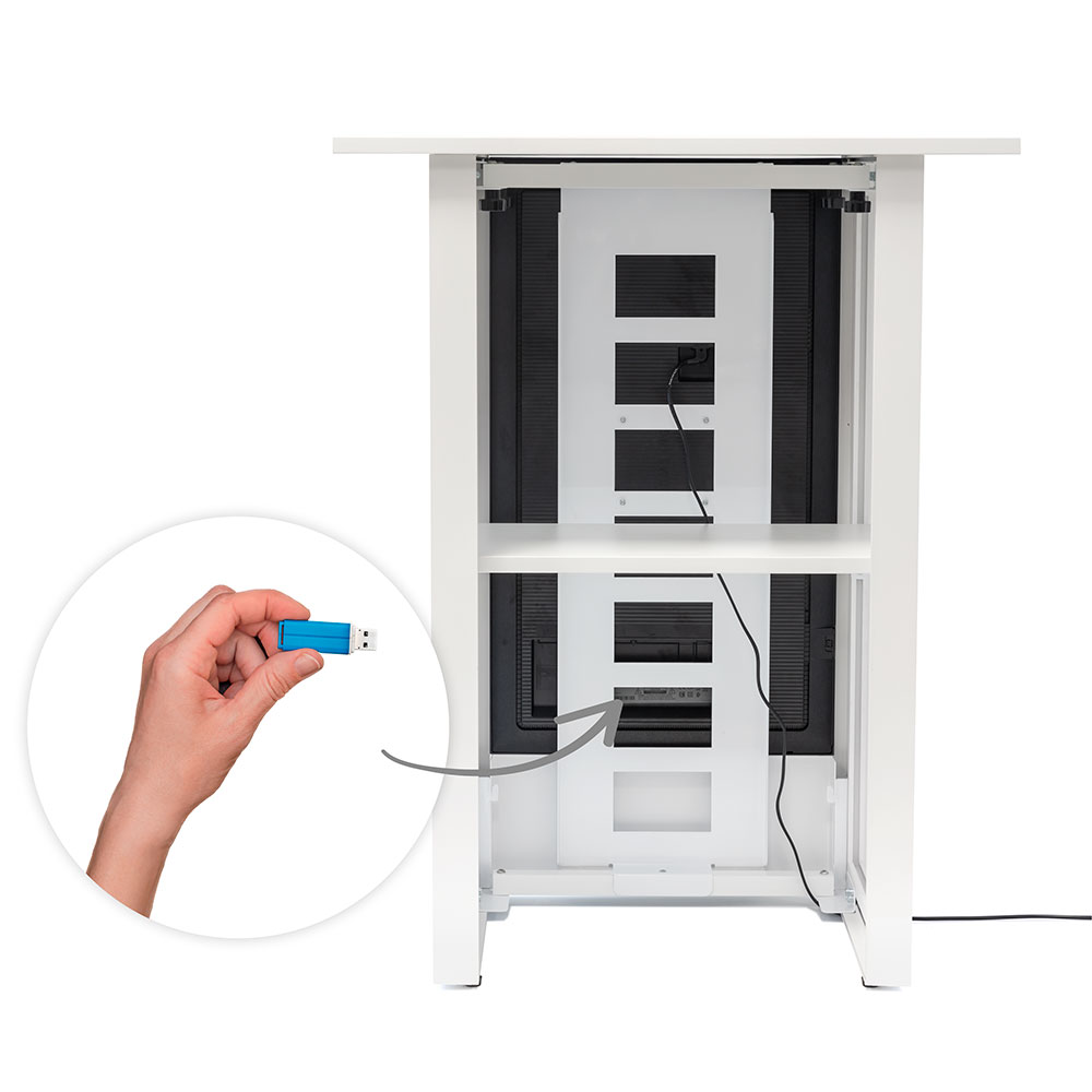 Digital Signage Promotiontheke Futuro 32" weiss - für den Inneneinsatz - Größe: 32 Zoll - 4K UHD - Farbe: weiss, mobil und zerlegbar - Format (BxHxT): 720 x 928 x 445 mm - incl. Samsung-LED Display für den 24/7-Einsatz - (24 Stunden an 7 Tagen in der Woche)