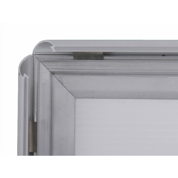 Klapprahmen Standard - Einlegeformat: DIN A2 (420x594 mm) - Profil: 15mm Gehrung - Oberprofile: silber-eloxiert (EV1) - Rückwand aus Polypropylen - Posterschutzfolie: Antireflex