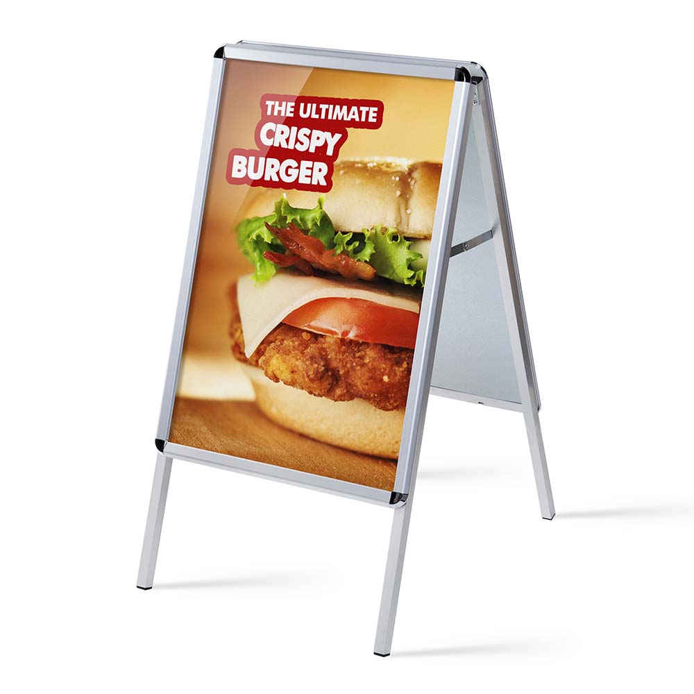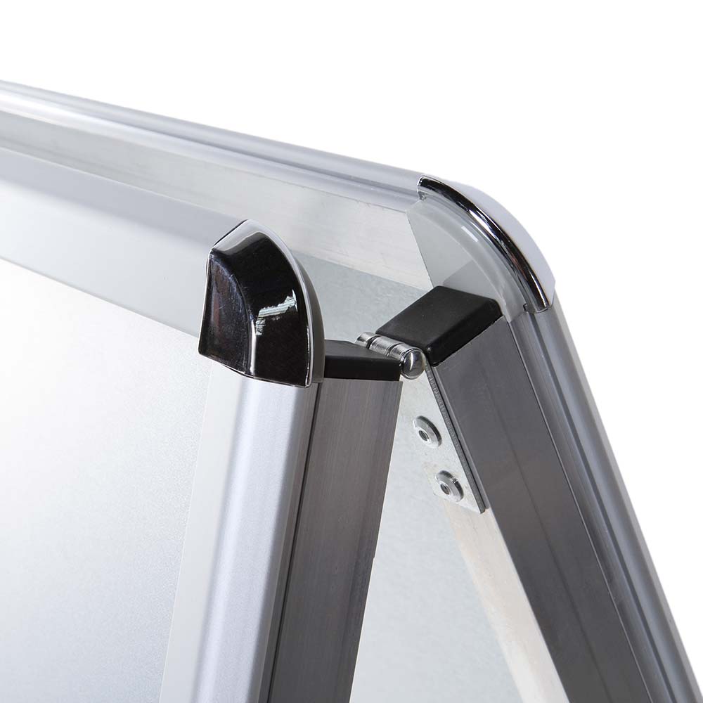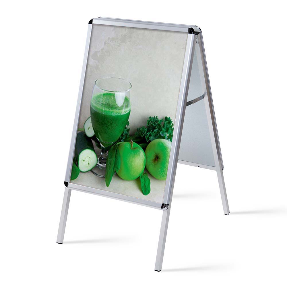 Kundenstopper INDOOR Rondo - Einlegeformat: DIN A2 (420x594 mm) - Profil: 25mm Rondo - Oberprofile: silber-eloxiert (EV1) - Rückwand aus schlagfestem Kunststoff - Posterschutzfolie: Antireflex
