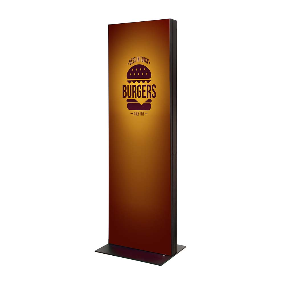 Digital Signage Info-Stele TrendLine NFR 55" - für den Inneneinsatz - Größe: 55 Zoll - 4K UHD - Farbe: schwarz, inkl. Textil-Spannrahmen - inklusive Textil-Digital-Druck Front/Rücken - incl. Samsung-LED Display für den 24/7-Einsatz - (24 Stunden an 7 Tagen in der Woche)
