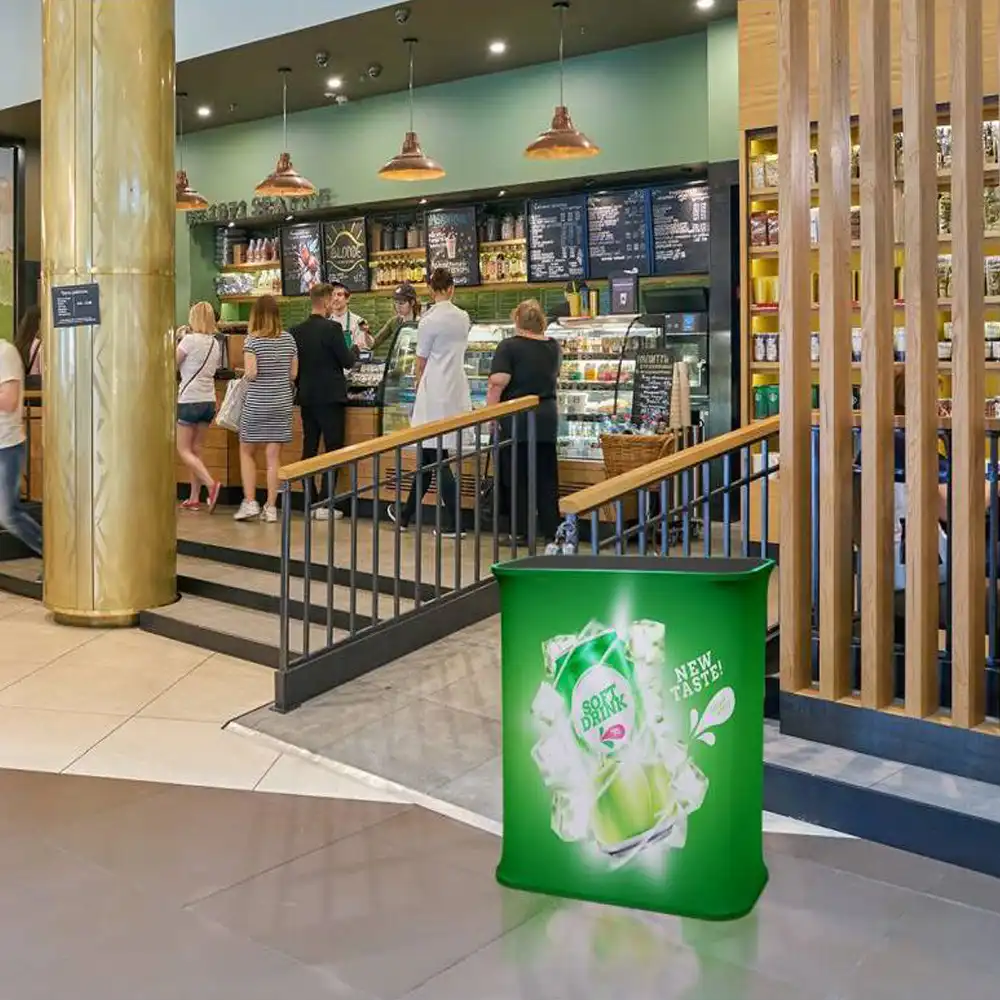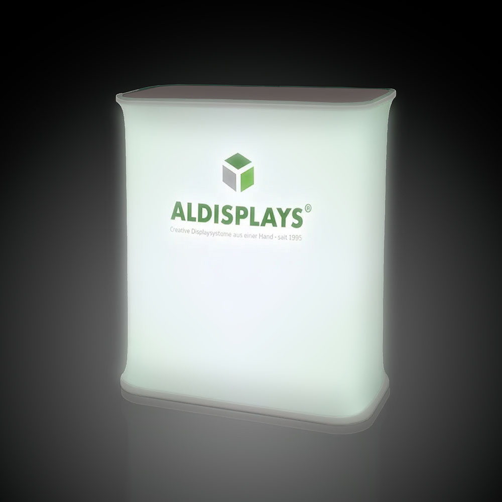 Promotiontheke Pull-Up Textil mit Beleuchtung - Format: 795 (B) x 1.005 (H) x 395 (T) cm - werkzeuglose Montage mit Federsystem - bst. aus Federsystem, Transporttasche und - 1x Digitaldruck Lumina 2.073x990 mm - Druck gemäß gelieferten Druckdaten