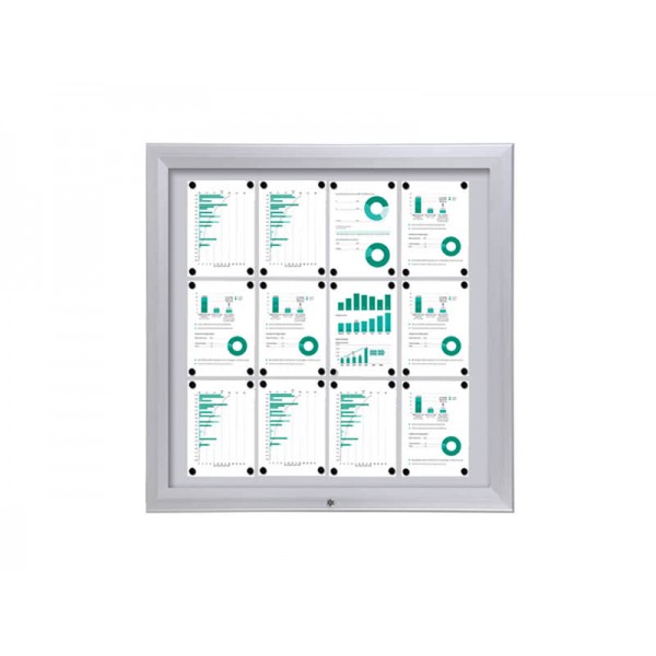 Schaukasten Premium BT46 Outdoor - 4x3 DIN A4 (Außenformat: 1.025x1.067mm) - Gehäuse und Rahmen aus Aluminium - Rückwand: weiß, magnethaftend - Drehtüre mit ESG-Sicherheitsglas - abschließbar mit Zylinderschloss