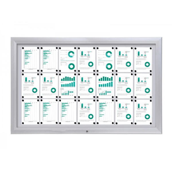 Schaukasten Premium BT46 Outdoor - 7x3 DIN A4 (Außenformat: 1.685x1.067mm) - Gehäuse und Rahmen aus Aluminium - Rückwand: weiß, magnethaftend - Drehtüre mit ESG-Sicherheitsglas - abschließbar mit Zylinderschloss