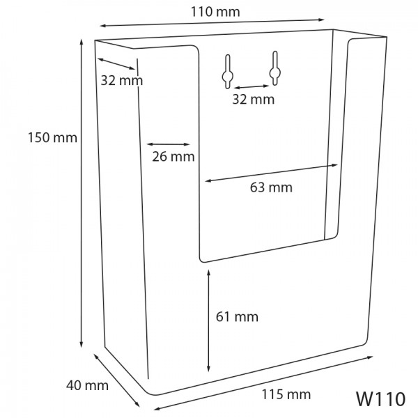 Wandmodell mit Adapter Tischaufstellung - Einlegeformat: Lang-DIN (105x210 mm) - Anzahl Fächer: 1 - Fachinhalt: 110 x 32 mm - Höhe: 150 mm - Ausrichtung: Hochformat - Material: Polystyrol glasklar
